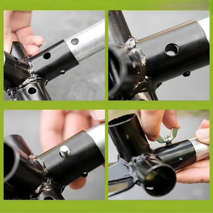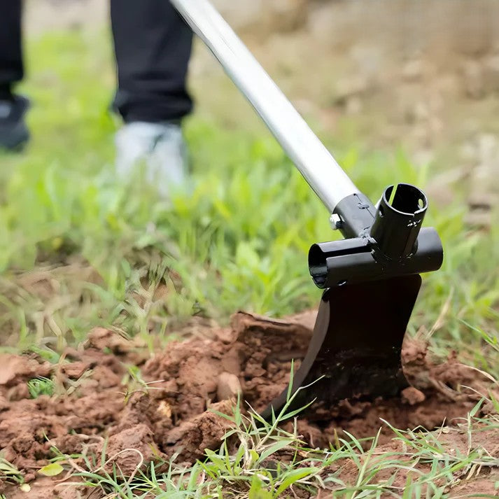 Zaboravite stalno menjanje alata. Ovaj 4u1 baštenski alat kombinuje motiku, sekiru, mini ašov i srp, omogućavajući vam da kopate, sečete, čistite i oblikujete teren bez pauze i gubljenja vremena.