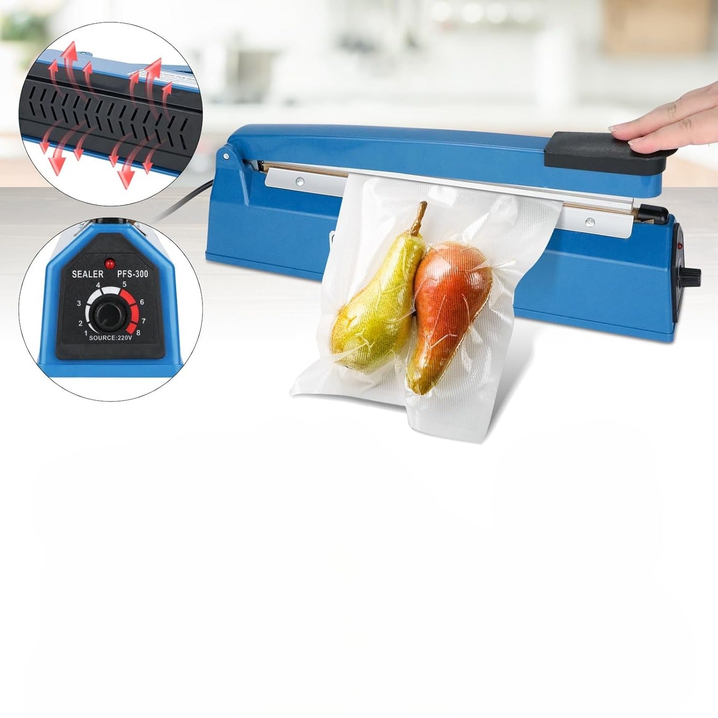 Omogućava zaptivanje do 20 cm širine, što je dovoljno za većinu standardnih plastičnih kesa i ambalaža.