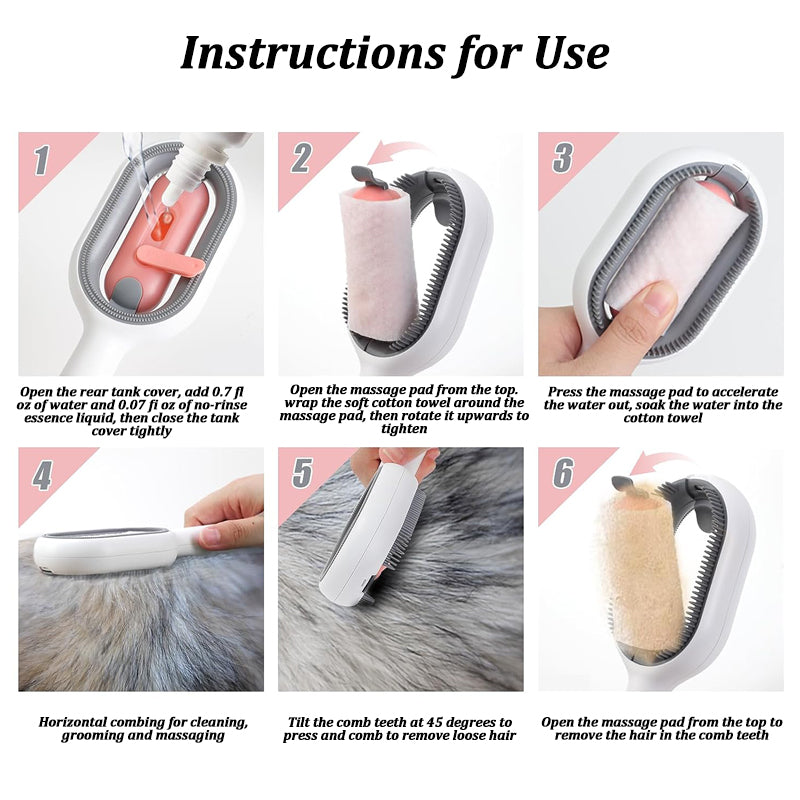 Ova četka za negu dlake kod kućnih ljubimaca dizajnirana je za mačke i pse sa dugom dlakom. Ima silikonsku stranu za čišćenje i vodu, kao i rezervoar za vodu, čineći je praktičnom za upotrebu.