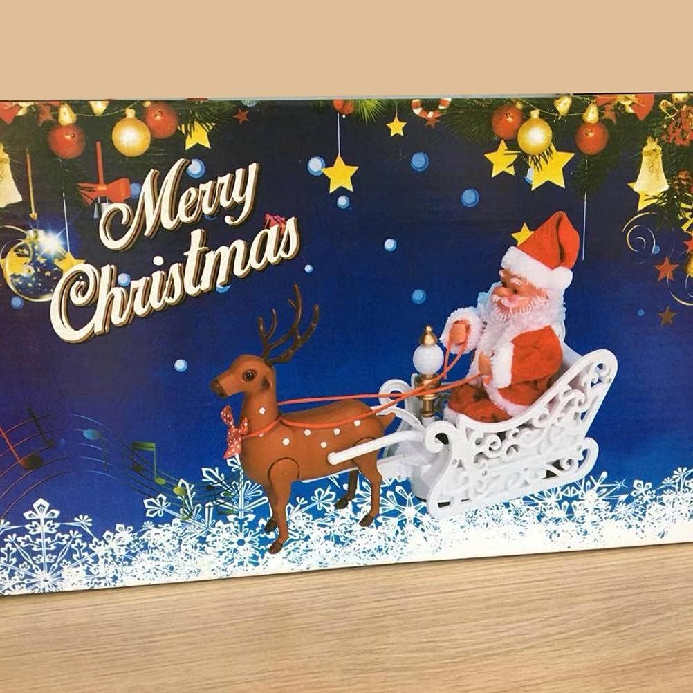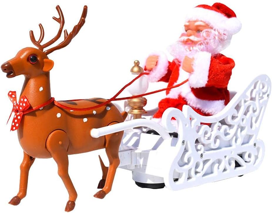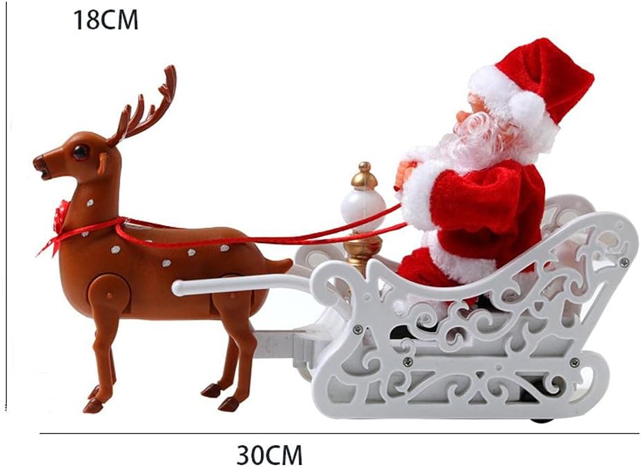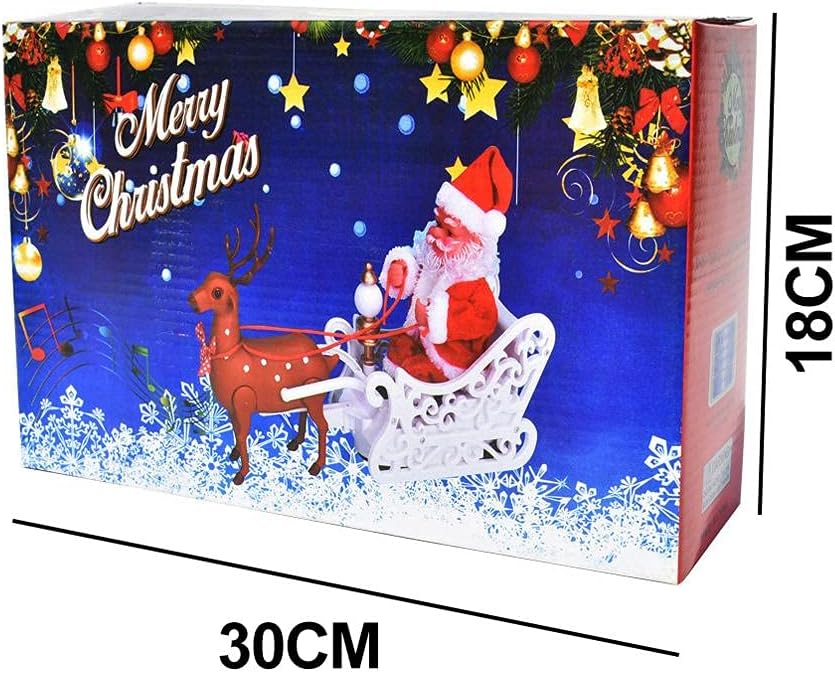 Kada ga uključite, irvas vuče sanke, a Deda Mraz se ritmično pomera i deluje kao da stvarno putuje da donese poklone.