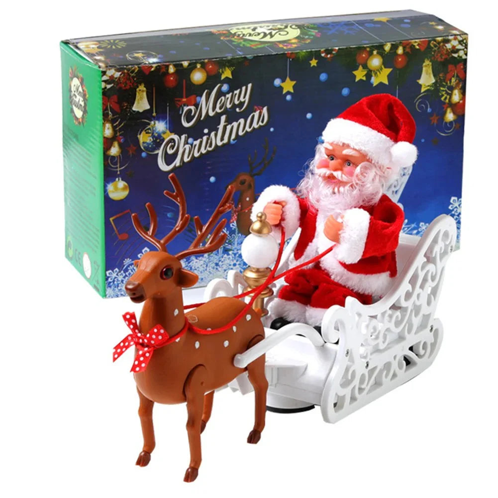 Ovaj set izgleda kao da je direktno iz bajke — irvas vuče sanke, a Deda Mraz veselo pleše uz muziku, stvarajući scenu koja uvek izmami osmeh.