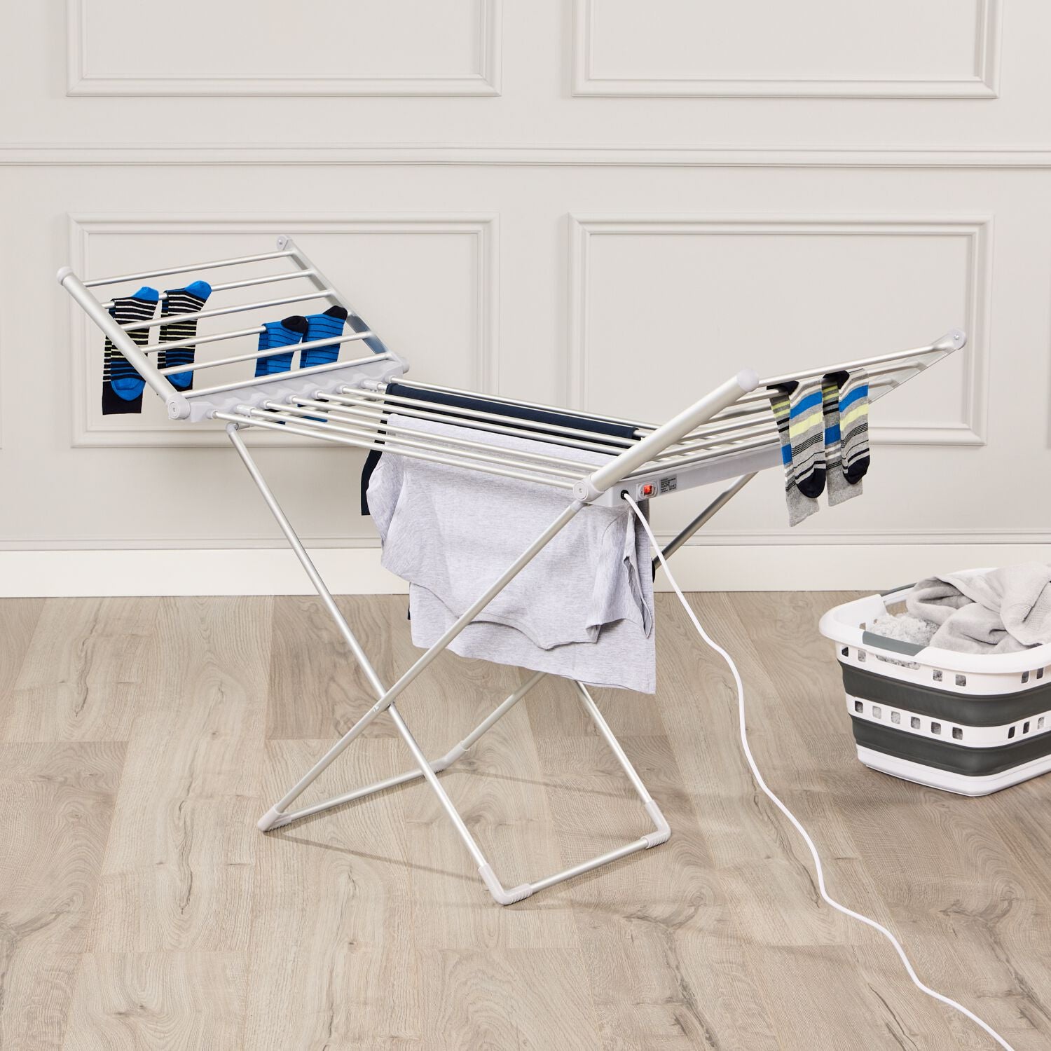 Savršen za mala domaćinstva, stanove ili zimske mesece. Suši majice, košulje, donji veš, posteljinu i osjetljive tkanine brzo i efikasno, bez neprijatnih mirisa i vlage u prostoru.