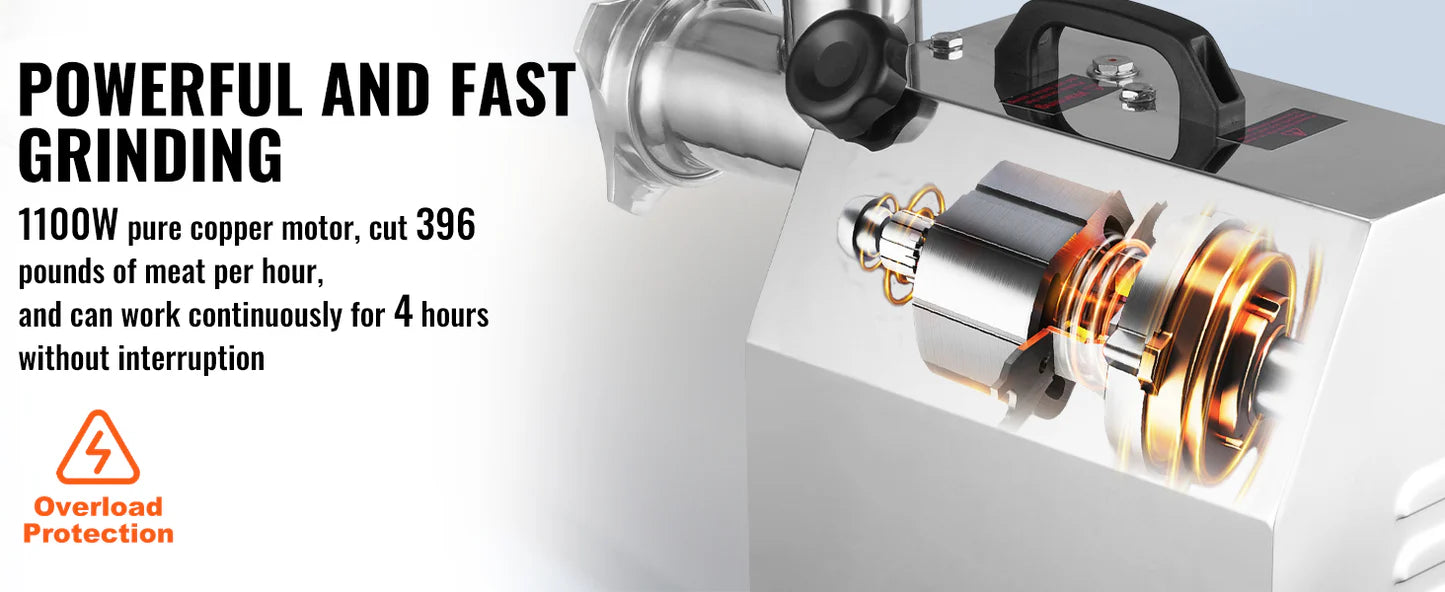 Funkcija reversa sprečava zaglavljivanje mesa i omogućava kontinuiran rad, dok ugrađena zaštita od pregrevanja produžava vek trajanja uređaja.