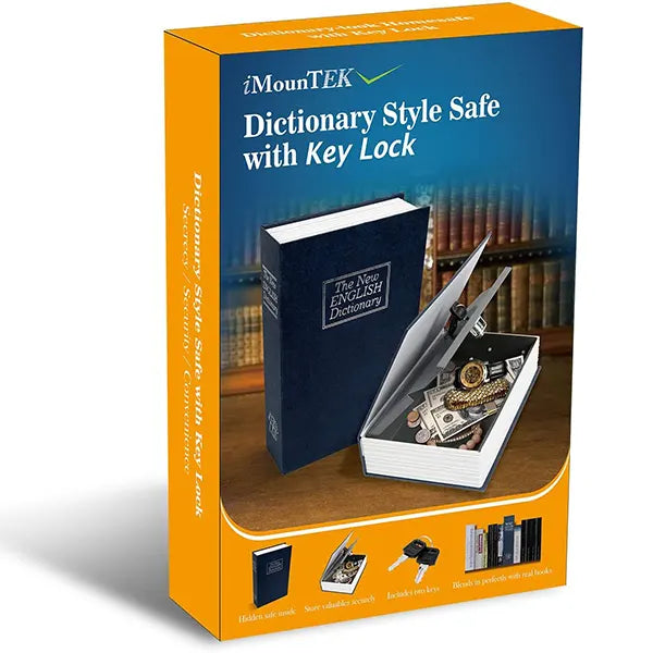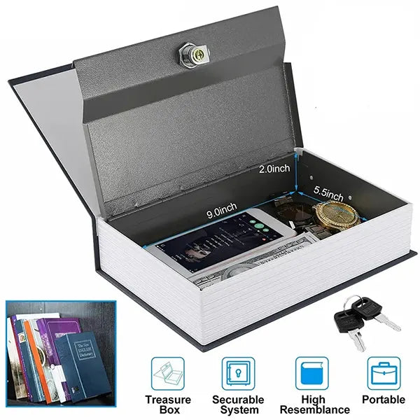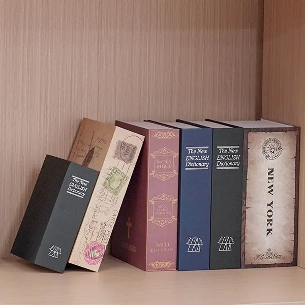 Izgleda kao obična knjiga, ali u sebi skriva čvrstu metalnu kutiju sa bravom. Savršeno se uklapa na policu i ne privlači pažnju.
