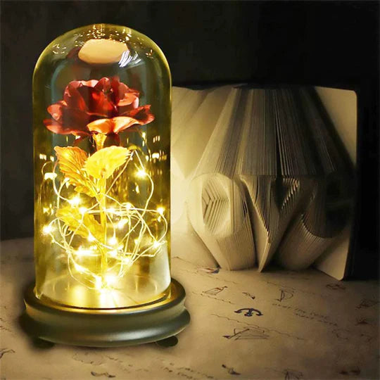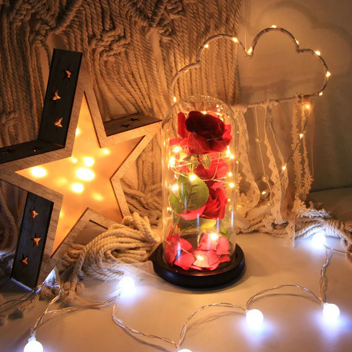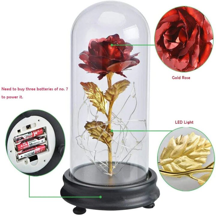 Večna Ruža sadrži svetla koja su dovoljno svetla da mogu da osvetle deo sobe i sadrži ružu koja je dobro zaštićena staklenom kupolom i daje joj taj lep odsjaj svetlosti koja se može uključiti i isključiti.