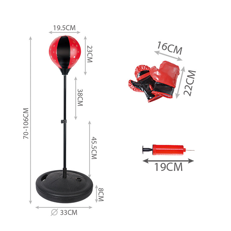 - Dolazi sa svim potrebnim elementima za trening, uključujući rukavice, bazu i šipku.