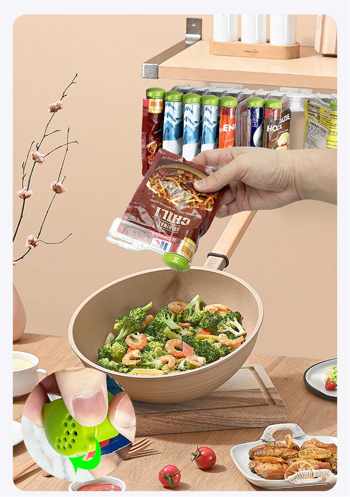Odličan za začinjavanje jela direktno iz vrećica začina i za očuvanje svežine i urednosti u kuhinji.