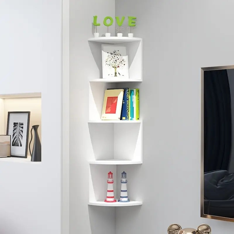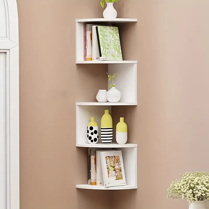🏠 Bela Zidna Ugaona Polica Sa 4 Nivоa – Višenamenski Organizator Za Dom I Kancelariju